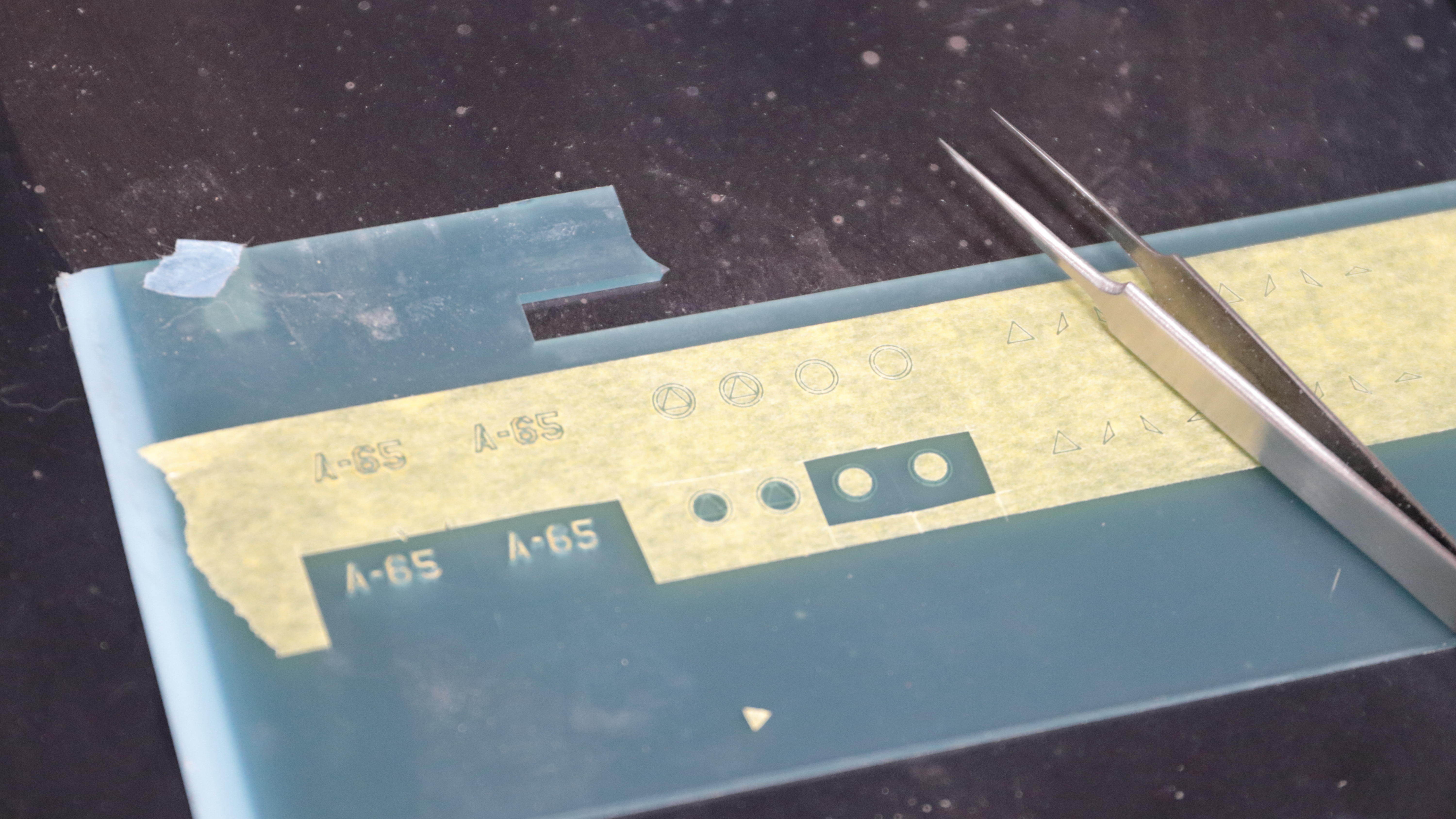 레이저로 마스킹 테입을 따내서 스텐실 해 봤습니다.
